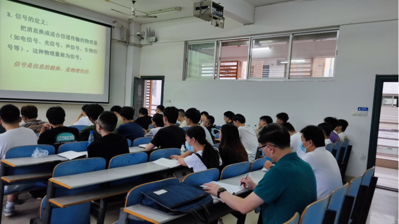 童耀南经理在15215教室听取了欧阳竞成老师的《信息论与编码》课程,并在课间休息时间与欧阳竞成老师进行了沟通交流。他充分肯定了欧阳老师教学准备充分,授课深入浅出,课堂秩序良好。他强调全体任课老师要贯彻员工中心、产出导向和持续改进理念,宣讲培养目标和毕业要求,效围绕课程目标开展教学,不断提高教学质量。