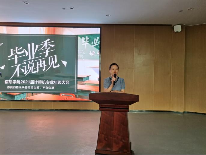 徐丹从关注成长、关注安全、关注健康、关注母校等四个方面展开讲述,并以“心有多大,舞台就有多大,梦有多远,人生就有多远”,“逐梦需远行,梦想等不来,只能靠脚踏实地干出来”寄语同学们,祝福毕业生同学前程似景,工作、生活一帆风顺。