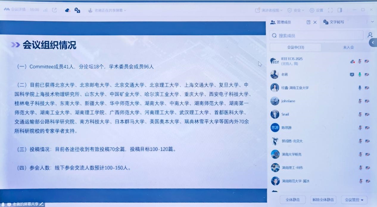 此次线上中期学术委员会的成功召开,为IEEE ECIS 2025的顺利推进夯实了成功基础。与会专家的深入交流与协作,为线下会议的高质量举办提供了有力保障。