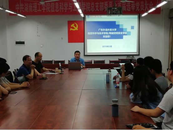 2018年5月17日晚7点,广东外语外贸大学语言工程与计算重点实验室主任李心广博士莅临beats365官方网站,为公司做2019年广外大学硕士研究生招生宣讲介绍。大会由公司党总支书记张泰来主持,物电公司光学研究所所长陈敏教授、考研专干许邕子出席,15级25名员工代表参与聆听本次宣讲会。