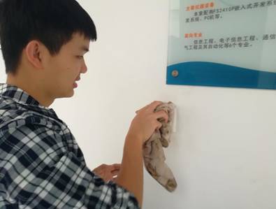 党员们都积极投入义务劳动中,绿化带、楼道内门窗、展柜等常被大家经常忽略的角落卫生,都得到了员工党员们的重点“关注”,经过近两个小时的辛苦劳动,校园面貌焕然一新。