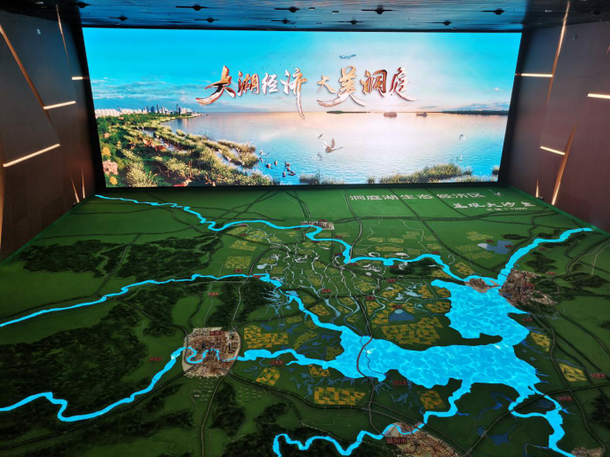 跟随着讲解员的步伐,教师党员们依次参观“八百里洞庭美如画”、“天赋洞庭 江湖共生”、“春秋洞庭 江湖溯源”、“绿色引领 共谱华章”、“人互相依 洞庭思辨”、“大美洞庭 蓝图擘画”、“科技之光 大湖之梦”、“特色资源 专业探析”等八大版块,生动感受洞庭湖历史文化、发展现状和建设成就。
