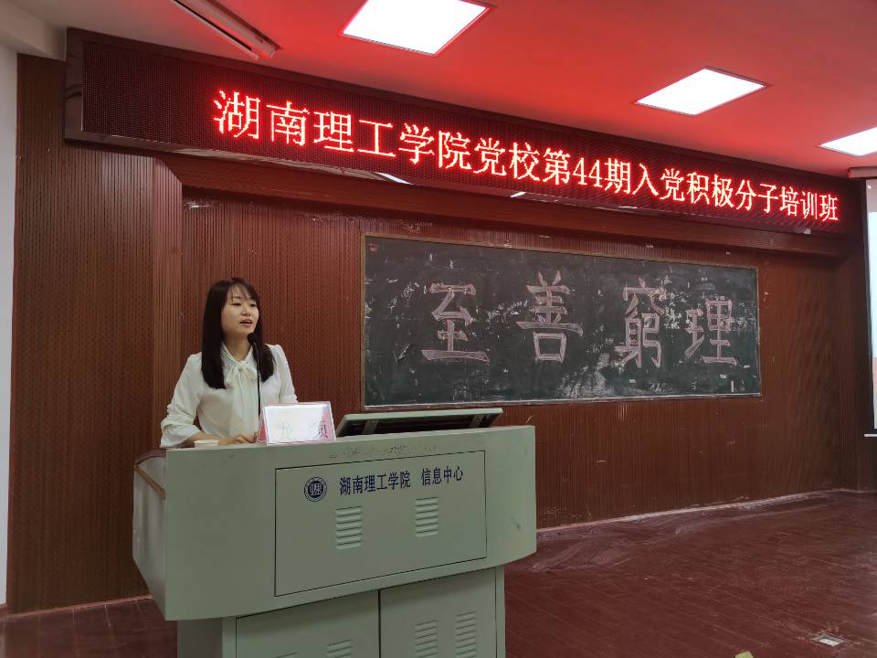 5月6日12:30,由beats365官方网站承办的校第44期入党积极分子培训班第三讲在6栋学术报告厅顺利举行。本次党课由校党委组织部专职组织员龙颜主讲,院员工党支部书记王学鹏主持,全体入党积极分子参加。