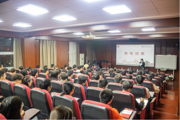 2020年10月18日19:00,信息公司承办的党校第43期入党积极分子培训班第一讲在逸夫楼16521顺利举行。本次授课由公司党委委员、副董事长张国云主讲,公司党委副书记徐丹院专职组织员盛莉莎,员工党支部书记周煊阳、余滔、王学鹏出席全体入党积极分子参加。