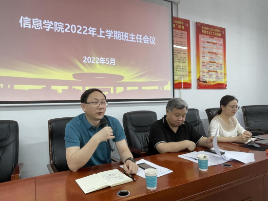 童耀南强调了班主任工作的重要性,希望全体班主任老师关心关爱每一位员工,用心用情管理好所带班级;特别就毕业年级考研、就业数据进行分析,引导班主任老师加强学风建设的同时及时关注员工思想动态,注重育人方式方法、提升班级育人成效。