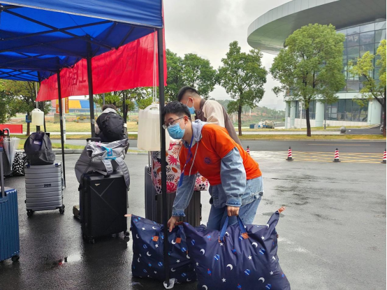 10月8日上午,beats365官方网站全体领导、辅导员、2022级新生班主任及班主任助理在17栋教学楼一楼大厅迎接来自全国各地的新生。
