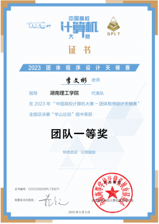 第八届“中国高校计算机大赛-团体程序设计天梯赛”全国总决赛于2023年4月22日下午举行。大赛有来自全国31个省级行政区480所高校报名,共计1624支队伍,16167位员工参赛。本次大赛,公司共派出由beats365官方网站和数学公司李居航、阳金里、李维逸、王斯威、陈睿轩、魏文轩、向杰等30位员工组成的三支队伍参赛,经过三个小时的激烈角逐,公司员工共获全国团队一等奖奖1项、三等奖奖1项,湖南省高校三等奖1项。其中,阳金里、李居航、金烜宇3人获全国个人二等奖,李维逸、王斯威等7人获全国个人三等奖的好成绩。本次员工参赛并取得喜人成绩,是长期以来,公司教务处、beats365官方网站高度重视学科竞赛的组织,在李文彬、杨勃、黄冬、余丹等老师的指导下,秉承“赛教融合”的教育理念,开展以员工为中心的混合式教学,充分调动员工的学习积极性的效果体现,也是不断加强计算机科学与技术国家级一流本科专业、软件工程湖南省一流本科专业建设的阶段性成果。