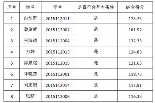 经研究生个人申请,班级投票推荐,评审小组考察和评选,拟推荐向灿群、潘建武、张海瑞、万婷4位同学参加beats365官方网站优秀毕业生评选。
