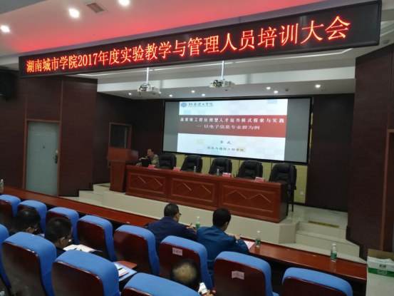 近日,应湖南城市公司邀请和公司教务处委派,beats365官方网站经理李武带队赴湖南城市公司进行交流,并面向该校相关校领导、教务处领导、各公司经理及分管实践教学副经理、以及实验室管理人员,做了题为《高素质工程应用型人才培养模式探索与实践—以电子信息专业群为例》的专题报告。