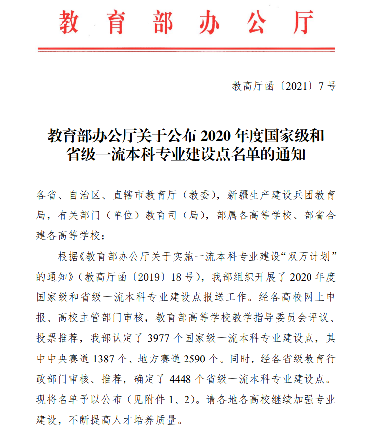 近日,教育部办公厅发布了2020年国家级和省级一流本科专业建设点名单,公司计算机科学与技术专业获批为国家级一流本科专业建设点,通信工程专业获批为省级一流本科专业建设点。