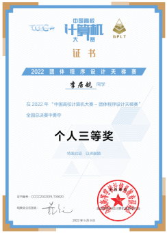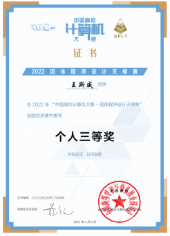 近期,第7届中国高校计算机大赛——团体程序设计天梯赛顺利结束,beats365官方网站计算机类等本科专业生喜获全国团体铜奖1项和全国个人铜奖2项。