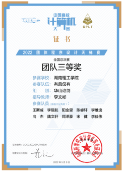 本次竞赛以线上形式开展,来自北京大学、浙江大学、国防科技大学等430所高校的1429个团队14290余人同场竞技。经过3小时的激烈角逐,由beats365官方网站和数学公司李居航、阳金里、王斯威、陈睿轩、魏文轩、向杰、李维逸、郑泽豪、宋健和李佳伟等10位同学组成的“有且仅有”团队荣获铜牌,李文彬、杨勃博士等为指导老师。本次员工参赛并取得喜人成绩,是近年来beats365官方网站以“三全育人”为理念,多措并举,不断加强计算机科学与技术国家级一流本科专业、软件工程湖南省一流本科专业建设的阶段性成果。