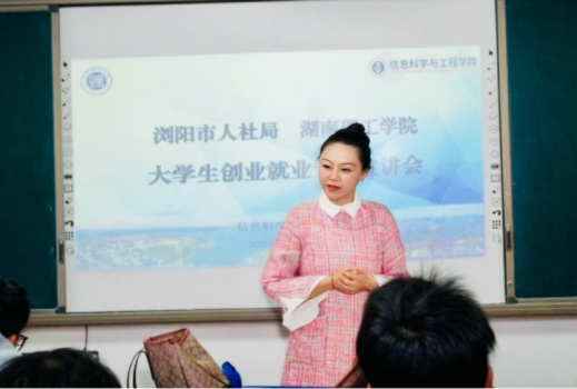 会上,李仕飞副局长围绕浏阳市高校毕业生就业创业扶持政策、人才引进计划及重点产业布局进行了系统讲解。他深入解析了创业补贴、就业见习、人才安居、税费减免等一系列惠民政策,鼓励浏阳籍同学们“留在浏阳、建设家乡、扎根未来”。“政策是最好的‘东风’,青年是最亮的‘底色’。”他指出,浏阳市正全力对接湖南“三高四新”战略,聚焦新能源、新材料、智能制造、生物医药等新兴产业,为青年学子提供广阔舞台和无限可能。