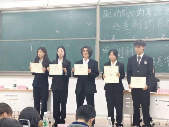 随后,王艳芬发表感言,辩论赛不仅是思维的碰撞,更是青年学子“理性思考、友善交流”的实践载体,希望同学们在思辨中成长,在表达中传递价值;永葆向上之心,不因善小而不为;常存慎独之戒,不因恶小而为之,在驱动善中拓展生命广度,在控制恶中夯实人生厚度!