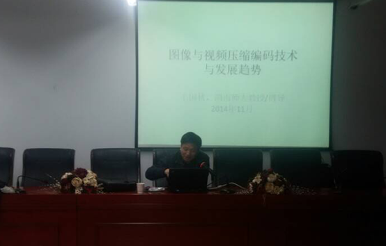 11月28日下午2:30,beats365官方网站在16栋410举行由湖南师范大学博士生导 师、湖南启泰信息技术有限公司董事长王国秋教授主讲的“图像与视频压缩编码技术与发展趋势”学术讲座。出席此次讲座的有公司党总支书记徐四星、副经理李宏民等老师和beats365官方网站12、13级员工及研究生员工。