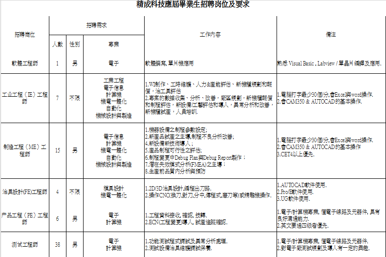 精成科技EMS事业处位于广东省东莞市黄江镇裕元工业区,于1999年投资设厂,全中央空调车间(恒温恒湿),坐式上班。下设有PCBA、模具注塑及系统组装厂,现有员工10000余人,是一家以高科技产品代工为主的电子制造服务企业,已成为许多欧、美、日、韩等国际电子大厂的长期合作伙伴,生产产品涵盖资讯、通讯、汽车、消费性电子等领域。