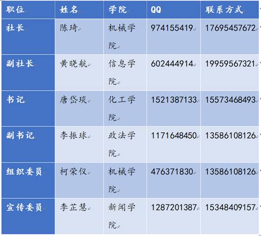 社团负责人联系方式: