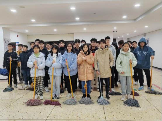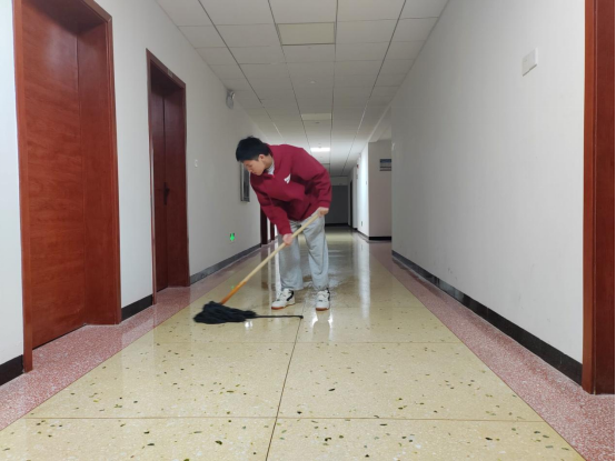 尽管天气寒冷,但大家的劳动热情依旧高涨。同学们分工明确,有的打扫楼道,有的打扫卫生间,有的擦窗,大家充分发扬不怕苦、不怕脏的精神,不放过任何一个卫生死角,各个忙得不亦乐乎。