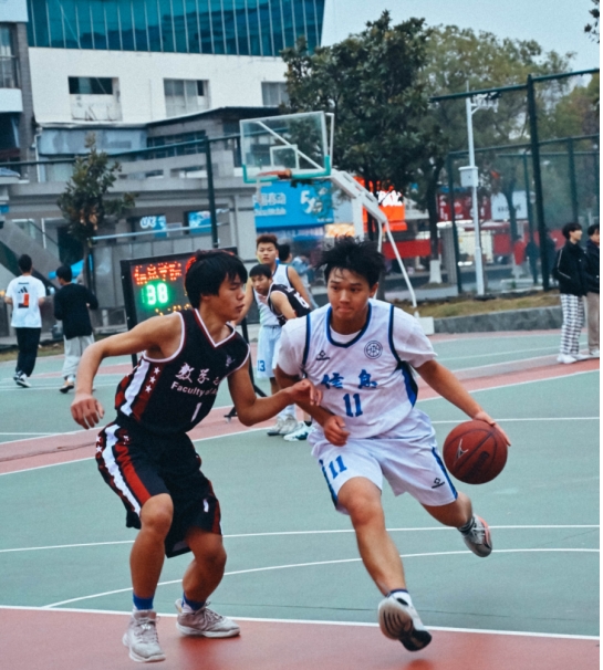 伴随着裁判哨声响起,双方队员上场。信息健儿迅速行动起来,他们奋力拼搏,时而进时而退,时而缓时而慢,全身心投入到这场比赛中,空气中弥漫着紧张的气息,赛场上摩擦出炙热的火花。抢断、传球、投篮,所有动作一气呵成,队长8号发挥自身精湛的球技进行快攻、突破、防守,突破对方重重障碍,成功进球!扣人心弦的角逐不断在场上碰撞,观众们也十分投入,为赛场上的球员们加油呐喊,为他们精彩的表现拍手称赞。