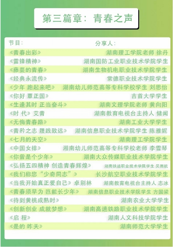 为贯彻党的二十大关于“推进大中小学思想政治教育一体化建设”的战略部署,深入学习习近平新时代中国特色社会主义思想,进一步推动广大青年传承红色基因、激扬青春力量,由湖南省委教育工委主办、湖南教育电视台承办的“奋斗青春号”大思政课堂于五四青年节当天,开启全省“青春分享会”超长直播活动,陪广大青年员工一起过节。