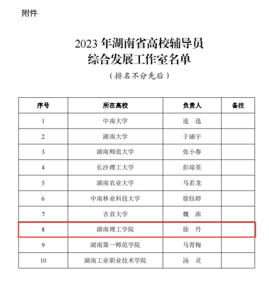 经高校推荐、资格审核、专家评审、结果公示等程序,中共湖南省委教育工委、湖南省教育厅共确定2023年湖南省高校辅导员综合发展工作室10个。