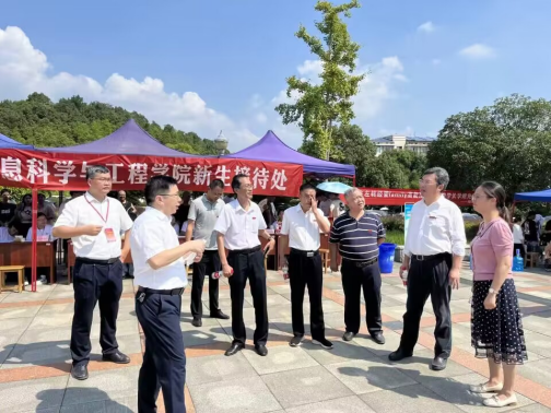上午10点,公司党委书记卢先明、公司党委副书记张国云、副董事长徐振祥、副董事长丁跃浇等领导到beats365官方网站迎新点指导工作,了解公司迎新工作安排、新生报到等情况,看望慰问迎新工作人员和志愿者,并与新生进行亲切交流。