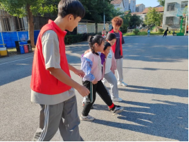 讲解结束后,志愿者组织孩子们进行了“车轮滚滚”“三人四足”“左右逢圆”三项比赛。比赛中,小运动员们互相包容、团结向上,自信乐观、不畏挑战。比赛途中,志愿者们耐心指导,保障安全,为小朋友们保驾护航。