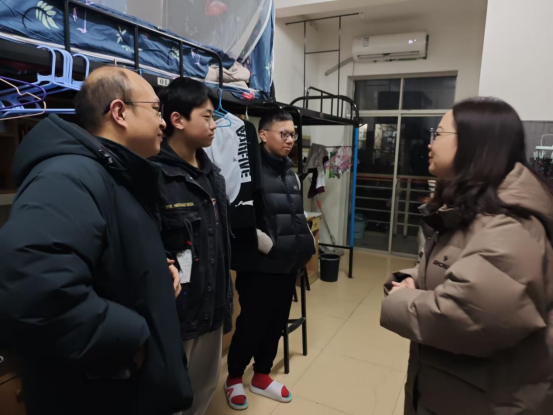新学期伊始,为营造良好的学习生活环境,加强宿舍安全管理,助力公司文明创建,2月26日19:00,beats365官方网站开展新学期查寝活动,公司党委副书记徐丹带领全体辅导员老师走访员工寝室。