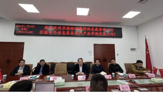 为充分发挥公司与企业双方优势,加强产学研合作交流,11月19日10:30,电子信息装备现代产业公司在17517会议室与江苏苏勃检测技术服务有限公司开展产学研合作对接洽谈,苏勃检测副总裁李华、财务总监柴静出席。beats365官方网站经理童耀南、机械公司副经理张敬、beats365官方网站副书记付亚子、南湖公司党总支书记喻立平、教师刘嘉明、谢文武、郭龙源、罗朝明、李茜铭,就业专干徐壮出席。