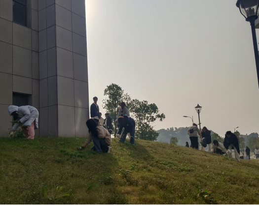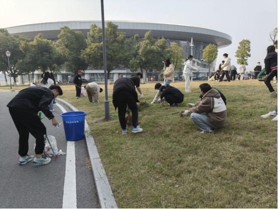 各公司生活委员分工明确,同学们劳动热情高涨,高效率地对周围草坪清除杂草,以实际行动为美化校园环境贡献力量,同时感受到劳动带来的收获和成长喜悦。