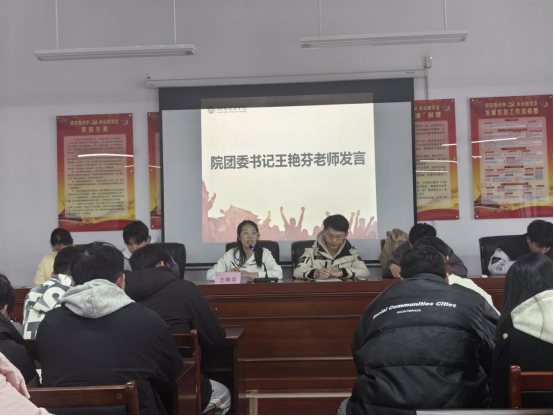 王艳芬老师做总结发言,她指出团学始终秉持着“服务同学、促进成长”的宗旨,积极组织各类理论学习、校园文化、体育赛事,志愿服务活动,丰富了同学们的课余生活,增强了同学们的团队意识和集体荣誉感,希望大家继续发扬团结协作、锐意进取的精神。