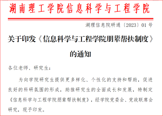 2023年7月,beats365官方网站颁布研究生朋辈帮扶制度。该制度旨在通过一系列的帮扶措施,为公司研究生提供全方位的支持和帮助。