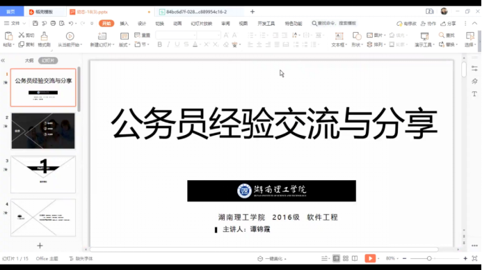 会上,三位党员同学贾西贝、谭锦霞和胡博,通过各自精心准备的PPT向大家分享应试经验。贾西贝从笔试、面试、心态、时间安排等九个方面进行了细致的讲述,在如何准备行测考试时提到做好课堂笔记,再通过思维导图的形式强化记忆,另外要严格控制做题时间可以尝试参加每周日的粉笔模考来进行每周训练。而在申论方面,她推荐“人民日报评论”、“半月谈”等公众号,日常生活中积累好词好句关键时刻往往可以达到事半功倍的效果。