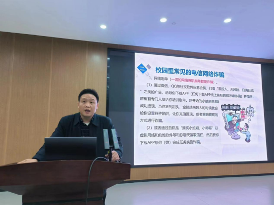 为进一步提升寝室长校园安全防范和责任意识,创造和谐安全的校园环境,3月20日19:00,beats365官方网站在17118举办寝室长校园安全教育专题培训,此次培训由保卫处副处长谭良机主讲,辅导员王艳芬主持,公司党委副书记徐丹出席。