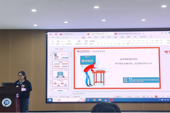 为进一步强化员工的纪律观念和安全防范意识,加强员工安全教育管理,维护校园平安稳定,建设平安、文明、和谐校园,beats365官方网站于11月22日19:00在17118组织2023级新生入学教育之“学习常见诈骗手段,反诈知识牢记心中”主题讲座。出席本次会议的有东方财富岳阳营业部负责人陈华、营业部老师陶智、陈紫微、赵乔伊,以及公司党委副书记徐丹,23级辅导员陶海兰、刘照馨。