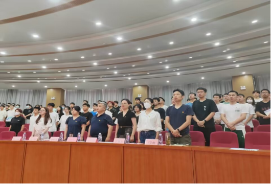 5月29日14:30,beats365官方网站于17118召开新党员宣誓大会。出席会议的有院党委书记甘向阳、院党委副书记徐丹、专职组织员刘照馨、员工党支部书记王艳芬、余滔、王学鹏、王璇。beats365官方网站全体预备党员、正式党员及入党积极分子代表参加会议。会议由余滔主持。