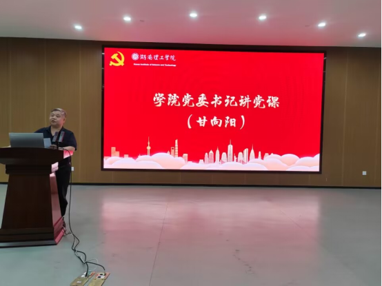 会议的最后,甘向阳毕业生党员讲在校期间最后一堂党课。他在祝贺大家的同时,提出三点希望:一是要强化党员意识和理想信念作为共产党员要始终践行共产主义的理论和实践,认真学习,提高自身的理论水平和分辨是非的能力。二是要坚持学习党的历史从历史的发展中汲取智慧,增强力量。发挥党员的先进性,牢记党员义务。三是要正确对待利益关系,保持清正廉洁。不断加强自身的思想道德修养,提高组织纪律意识。最后,甘向阳希望同学们秉承“至善穷理”的校训,脚踏实地,敢于担当,永葆共产党员先进性。